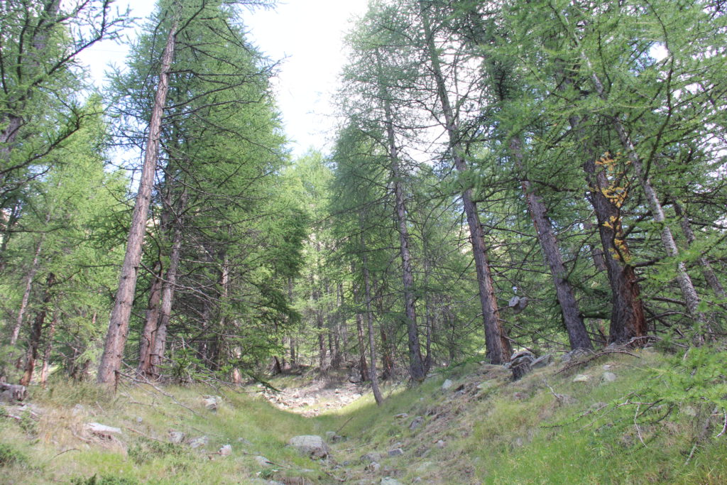 Installation de la cordelette de rappel pour éloigner le contrepoids du tronc du mélèze Contrepoids éloigné du tronc du mélèze par la cordelette de rappel (jaune) Vue d'ensemble. En agrandissant l'image on voit bien la cordelette de rappel (jaune), qui écarte le contrepoids du tronc du mélèze