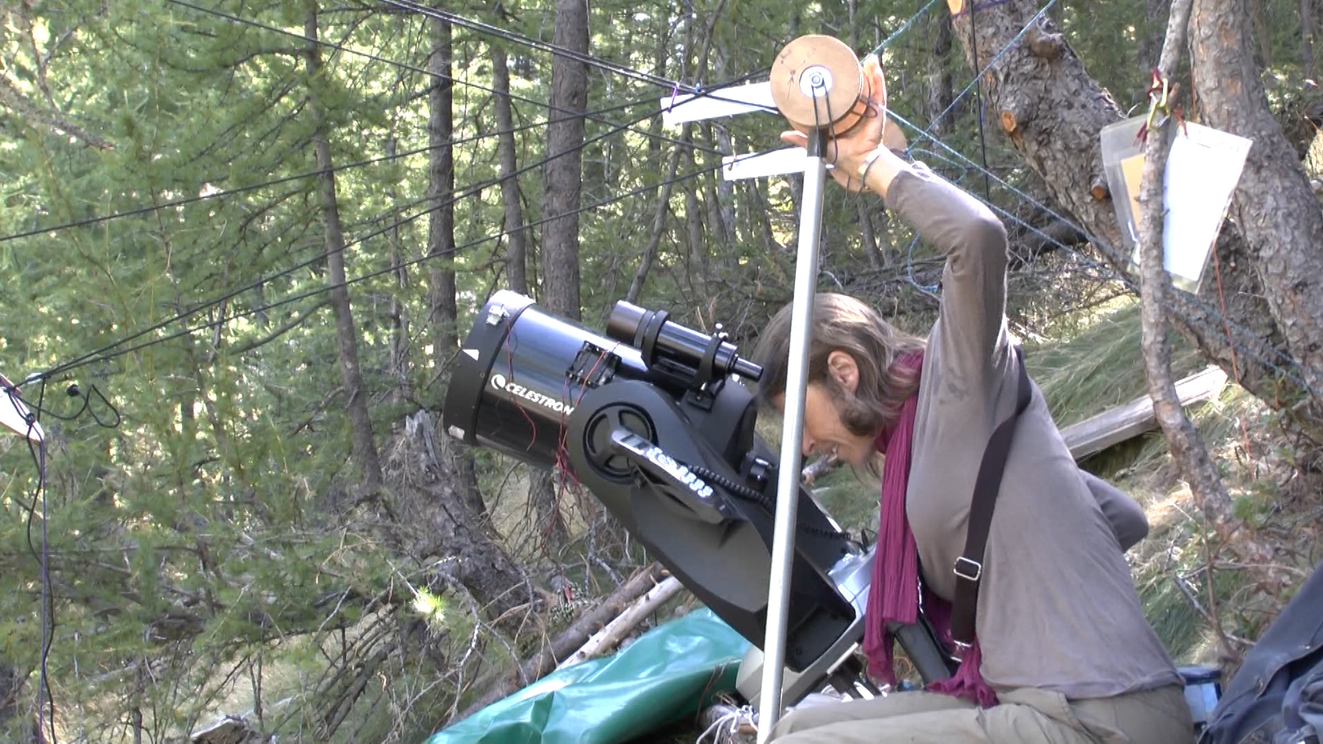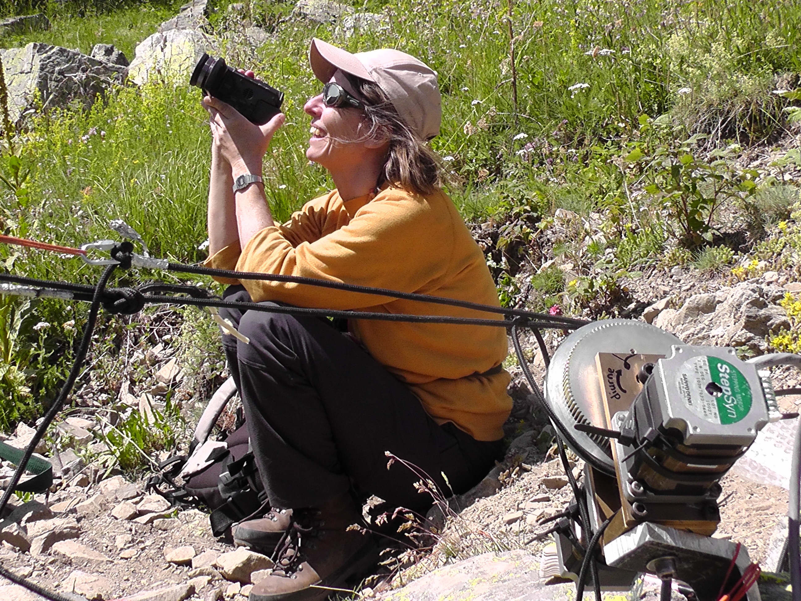 Martine Roussel filmant la manipulation de la nacelle, à droite les moteurs du point est ©AL |