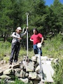 | Calage de la station de référence du GPS RTK sur un repère IGN (M. Roussel) 2012©JM |